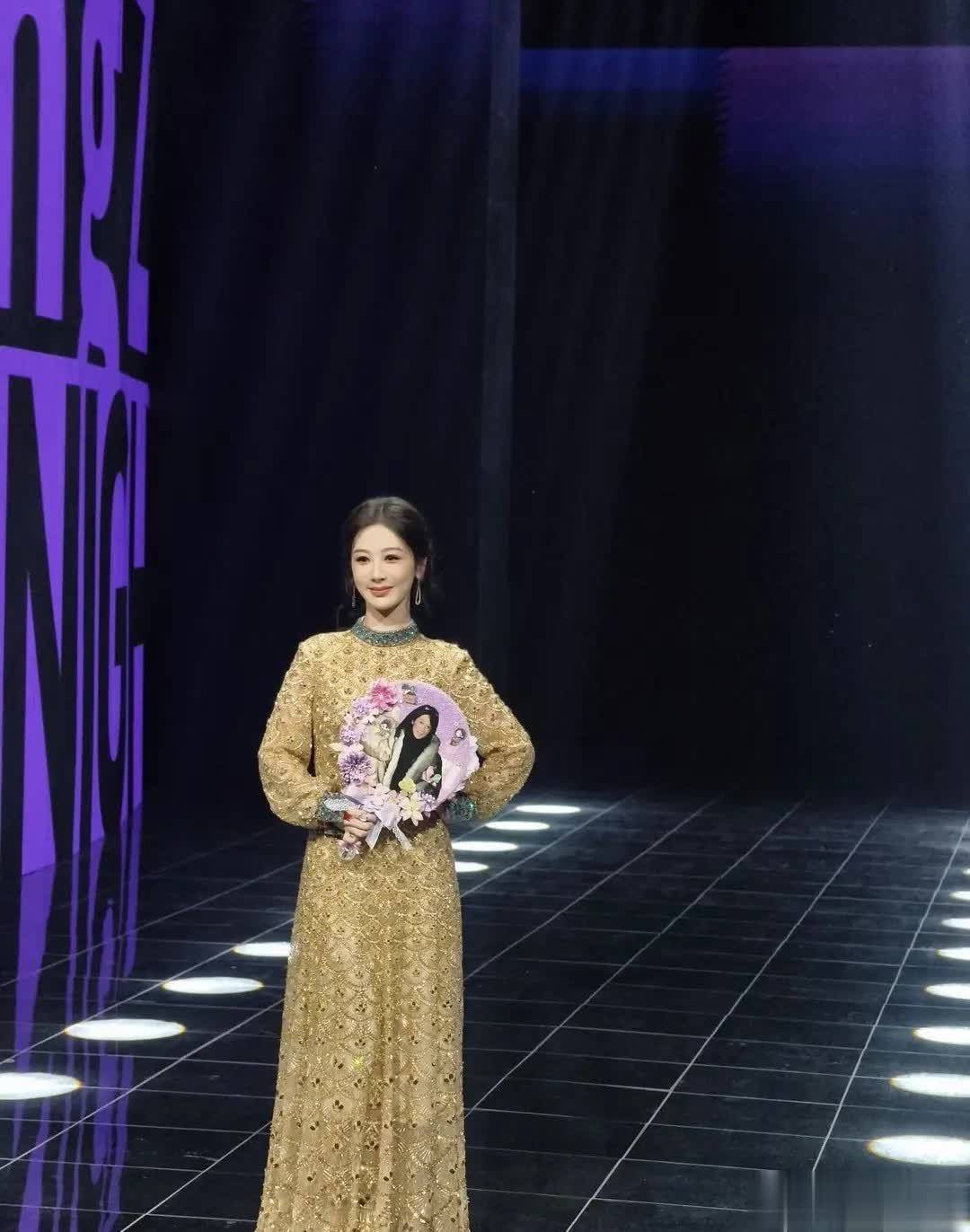 微博之夜红毯,33岁的杨紫一袭金色亮片长裙,优雅又甜美,直接把“贵气”焊在身上。